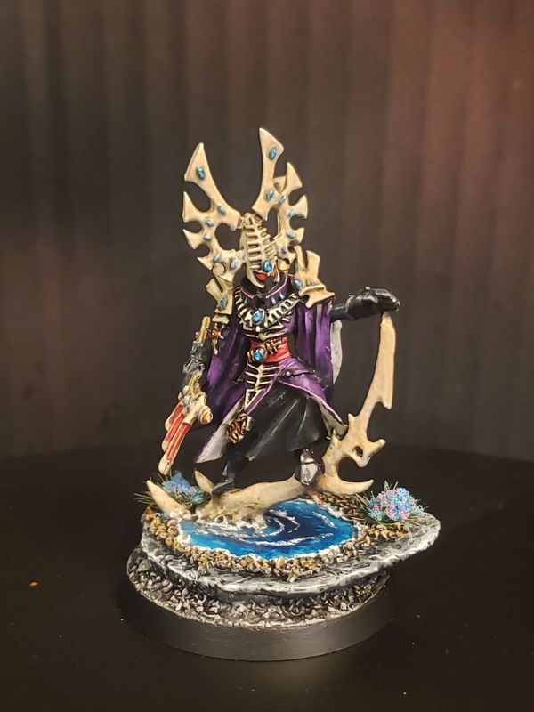 Eldar is not an army I collect, however, it is my brother's main army. We have been in this together since the beginning, and while he is a competent painter in his own right, he requested a miniature painted by me for his display case.