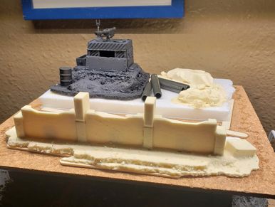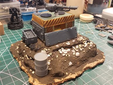 Not all the terrain built here in the shop is practical to mold and cast. In this case an Imperial bunker was scratch built, adding 3D printed parts and genuine GW bits.